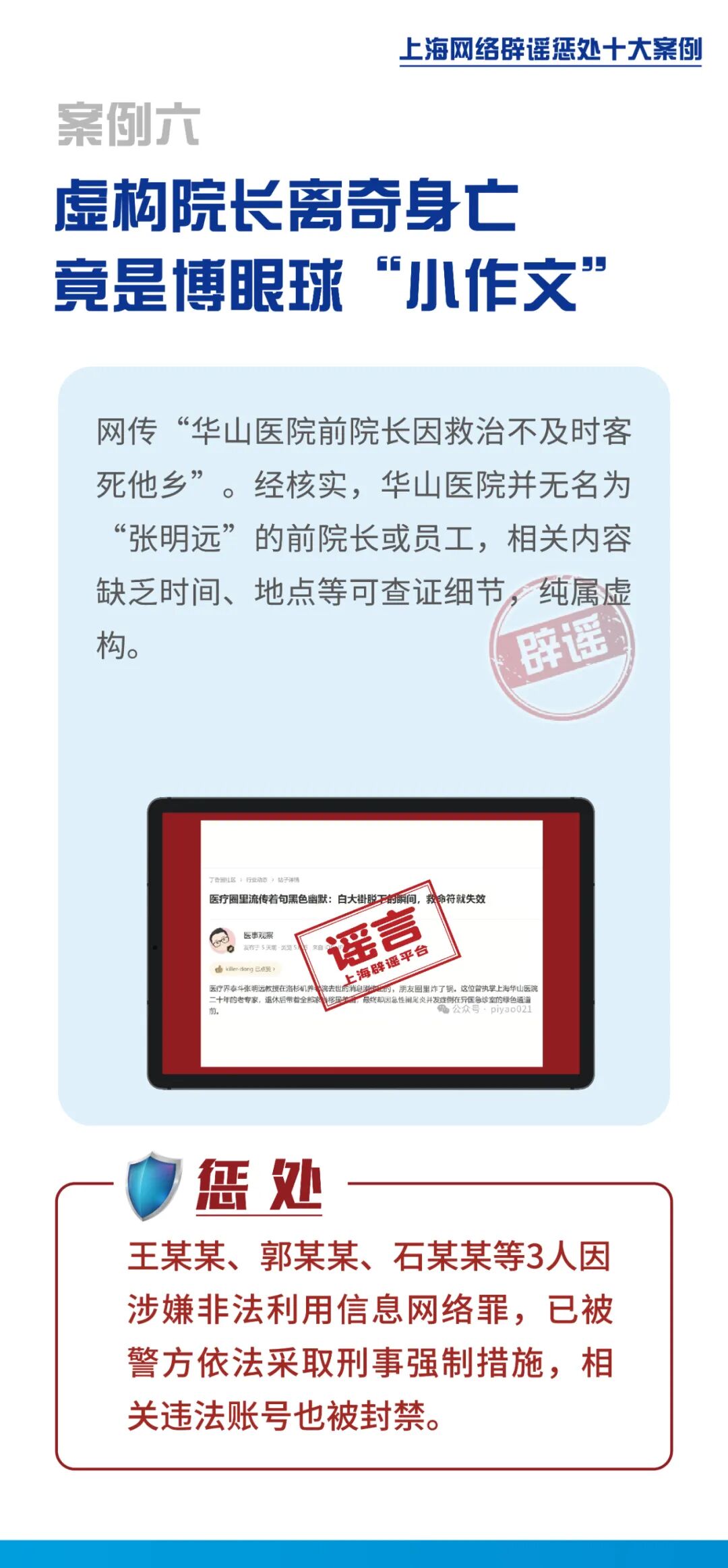 近日,2025年上海网络辟谣宣传周活动启动,并发布《上海网络辟谣惩处十大案例》。活动由上海网信办指导,上海市互联网违法和不良信息举报中心主办。
