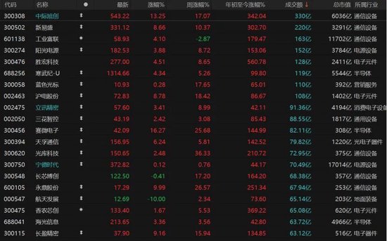 市场亏钱效应明显,共计1692只个股收涨,76只涨停;3593只个股收跌,跌停股6只。市场共8只个股日成交额超过100亿元,CPO“易中天”三巨头(新易盛、中际旭创、天孚通信)联袂大涨,成交亦居前;、、-U涨幅均超过4%,涨近4%,微红,但地面装备个股跌停。