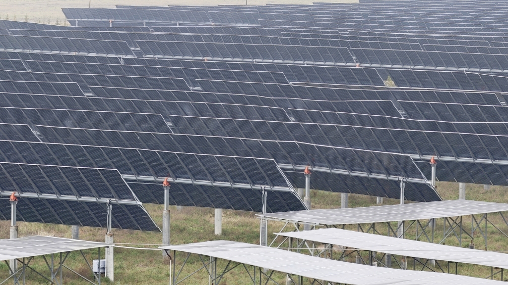 准格尔旗在矿山开采区修复中,因地制宜引入光伏发电站。 澎湃新闻记者 王洛伊 图