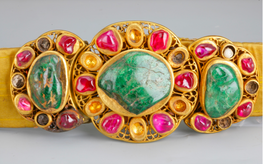 万历皇帝纯金宝石碌带,中镶嵌宝石为祖母绿